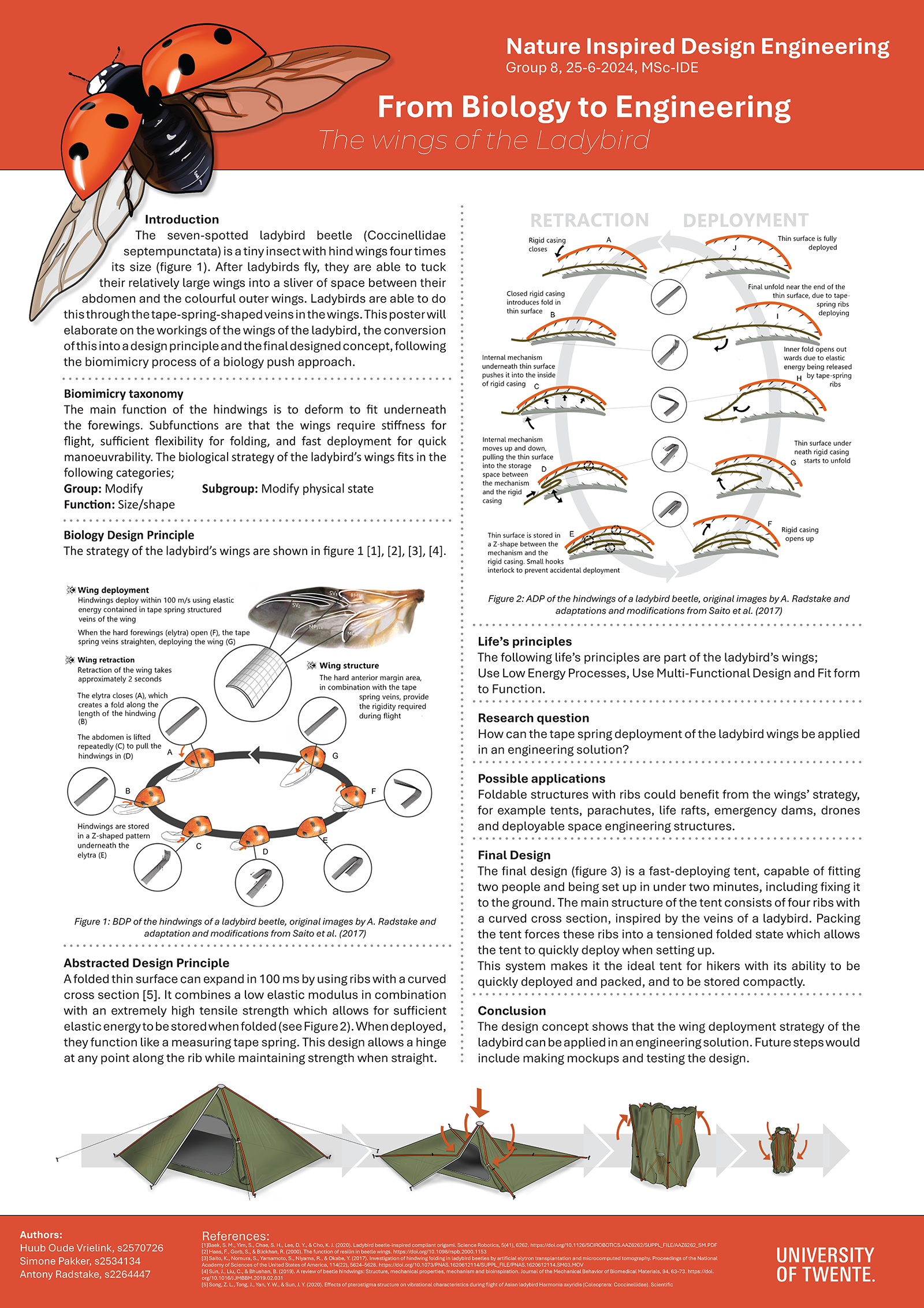 Together with my teammates, we analysed the folding of the ladybird’s wings. After that we came up with possible applications, resulting in a compact tent design.